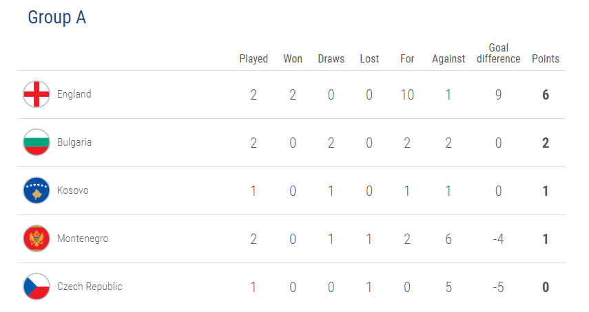 Nije neočekivan ali je najteži do sada u takmičarskim utakmicama- fudbalska reprezentacija Crne Gore poražena je od Engleske (1:5) u Podgorici u drugom kolu grupe A kvalifikacija za EURO 2020. Drugi put u kvalifikacionim utakmicama Crna Gora je na svomterenu primila pet golova – ranije se to desilo i u duelu sa Moldavijom (2013. godine 2:5), u kvalifikacijama za Svjetsko prvenstvo u Brazilu.Početak utakmice bio je obećavajući – u 17. minutu prvi prelazak na protivničku polovinu kaznio je solo akcijom Marko Vešović. Ali, to je bilo sve od Crne Gore.