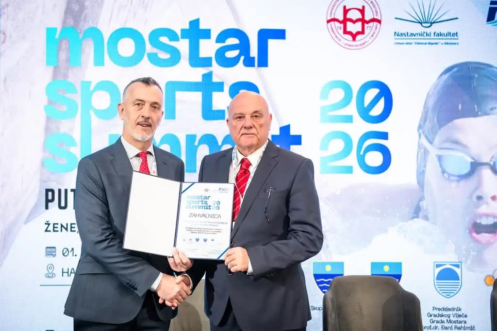 Na “Mostar Sports Summit 2026.” koji je završen juče prof.dr Duško Bjelica, redovni profesor na Fakultetu za sport i fizičko vaspitanje Univerziteta Crne Gore i predsjednik Crnogorske sportske akademije dobio je novo priznanje za doprinos razvoju akademske saradnje i naučno-stručnog dijaloga na tom simpozijumu.