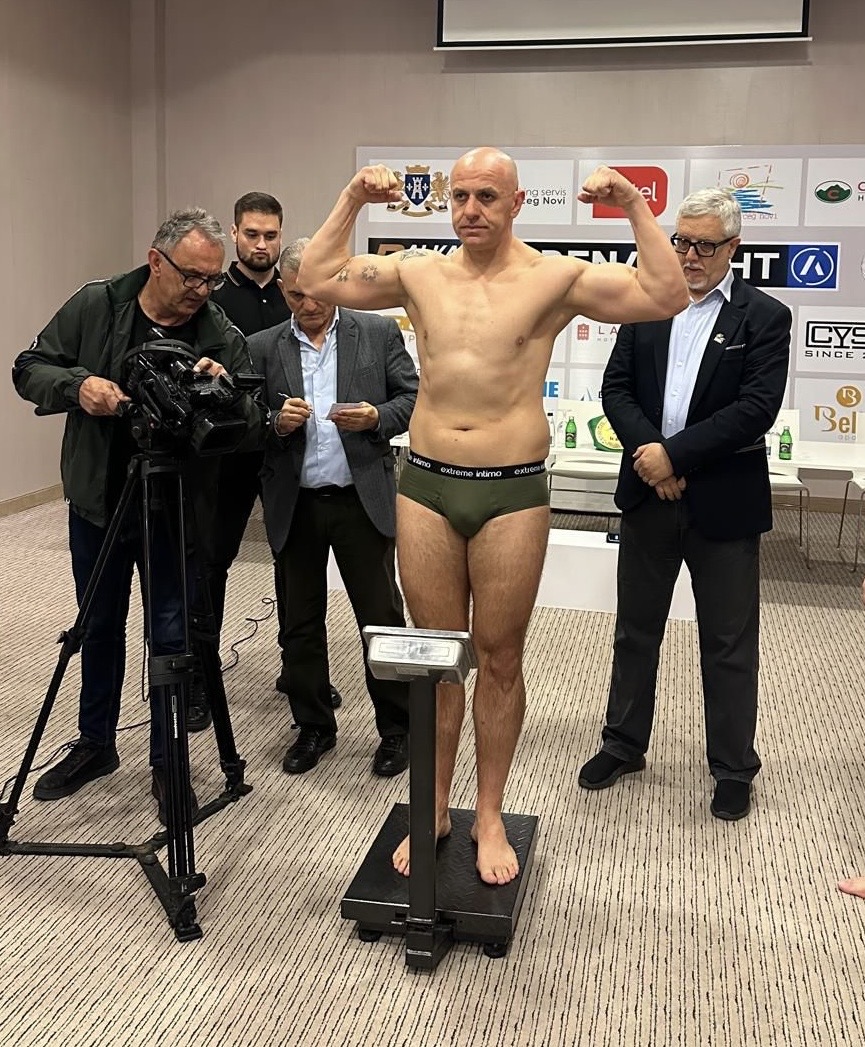Prema podacima sa zvaničnog mjerenja, održanog u hotelu “Palmon Bay” u Igalu, bokser iz Herceg Novog je imao 90,400 kilograma, dok je Ajban bio teži 200 grama – 90,600 kg, što potvrđuje da publiku očekuje izuzetno izjednačen i fizički zahtjevan duel.