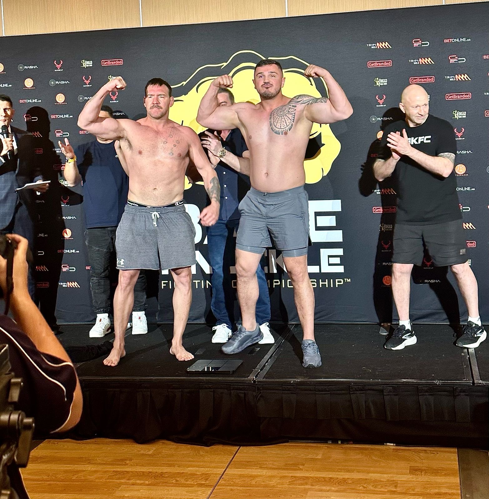 Prašović je na vagu izašao sa 113 kilograma, dok je Flanagan bio lakši i imao 104 kilograma, ali razlika u težini nije umanjila tenziju koja se osjetila već pri prvom susretu oči u oči.